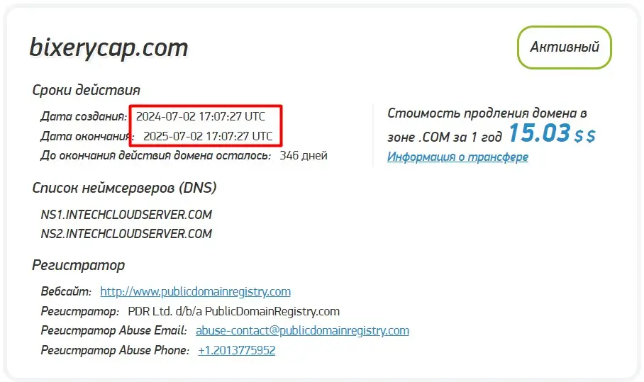 ❌Для проверки доменного имени bixerycap.com мы использовали специализированный сервис whois. Домен был создан 2 июля 2024 года, что явно не совпадает с заявленной датой основания компании 2013 год. Разводилы работают чуть меньше месяца, а уже попали в списки неблагонадежных.
